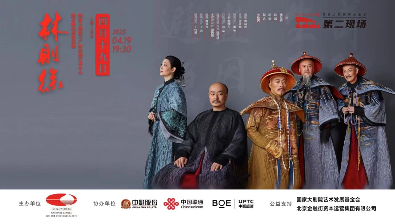 国家大剧院舞台艺术“第二现场”首场直播——话剧《林则徐》将于4月19日19:30在全国各个省、自治区、直辖市的20家剧院和百余家影院同步直播。