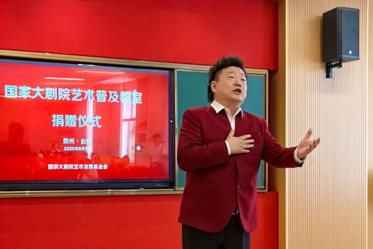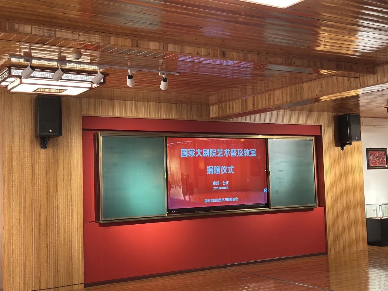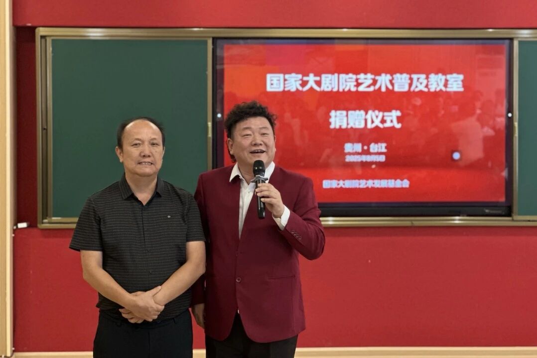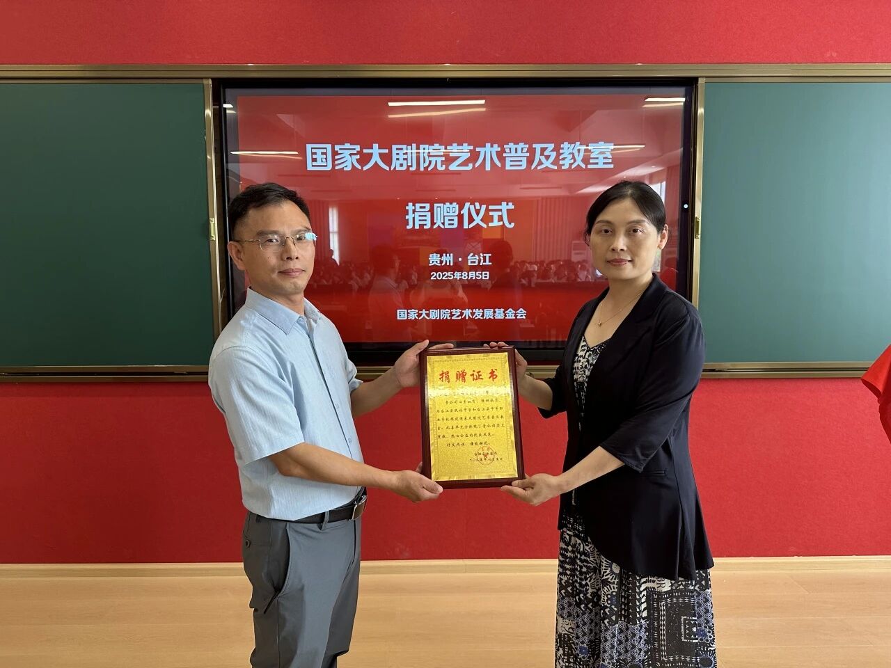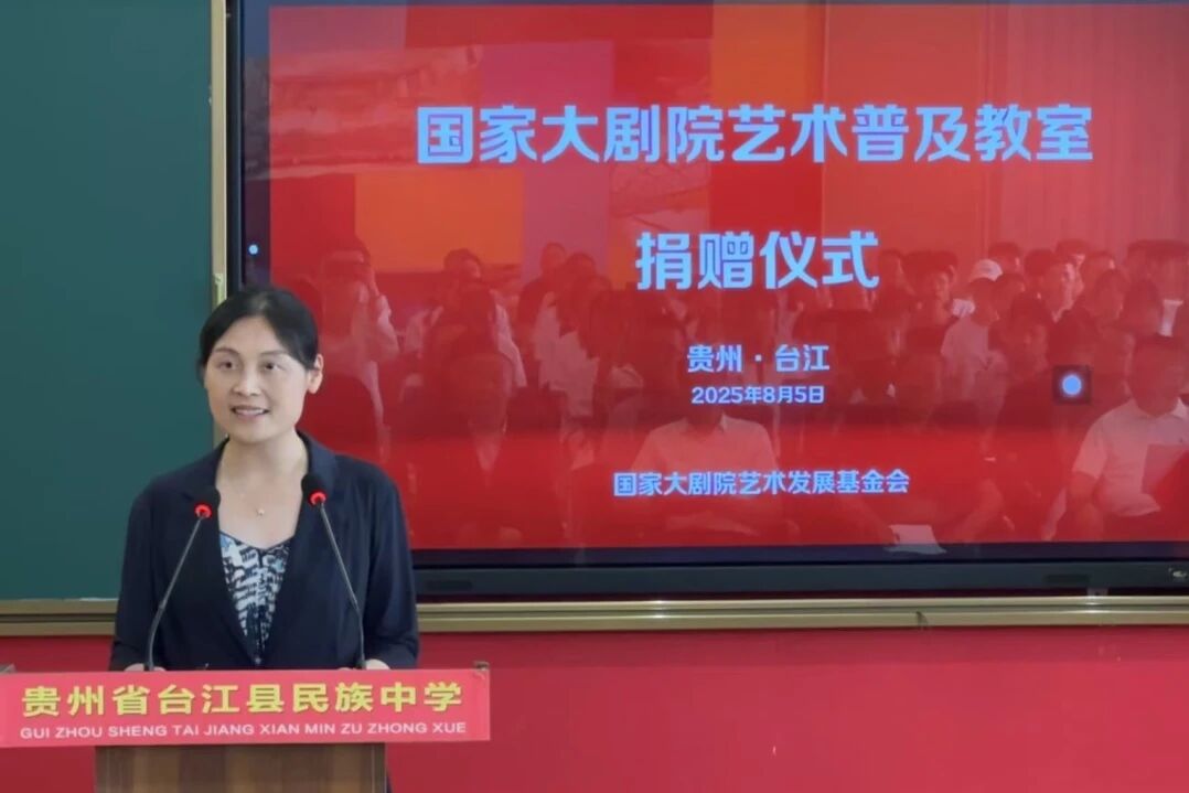 2025年8月4日-6日,国家大剧院艺术发展基金会来到苗族人口占比高达98%、拥有14项国家级非物质文化遗产的贵州省台江县捐建2间艺术普及教室,并在台江县民族中学举行艺术普及教室捐赠仪式。国家大剧院党组成员、副院长王诚率队赴贵州台江,国家大剧院发展合作部部长、基金会理事长黄文卉,艺术普及教育部部长陈戈,艺术品部部长刘欲晓共同出席。黔东南州教育局局长曾武松,台江县委副书记、县长杨德昭,县委副书记张德耀等县领导及台江县教育局主要负责同志参加此次活动。