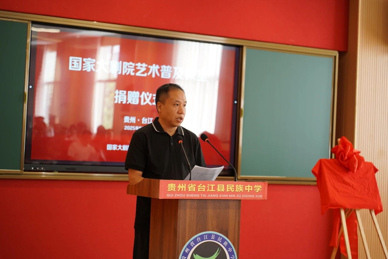 国家大剧院党组成员、副院长王诚在讲话中指出,此次捐赠是国家大剧院践行社会责任、推动文化艺术普及的重要举措。“艺术拥有改变生活和人生的力量,”王诚副院长强调,“希望同学们能走进艺术、热爱艺术,心有敬畏,在艺术的熏陶中提升审美、涵养心灵。”他期待艺术普及教室成为“艺术的播种地”,让艺术从国家大剧院传递到贵州台江,为当地师生提供更广阔的艺术发展空间。