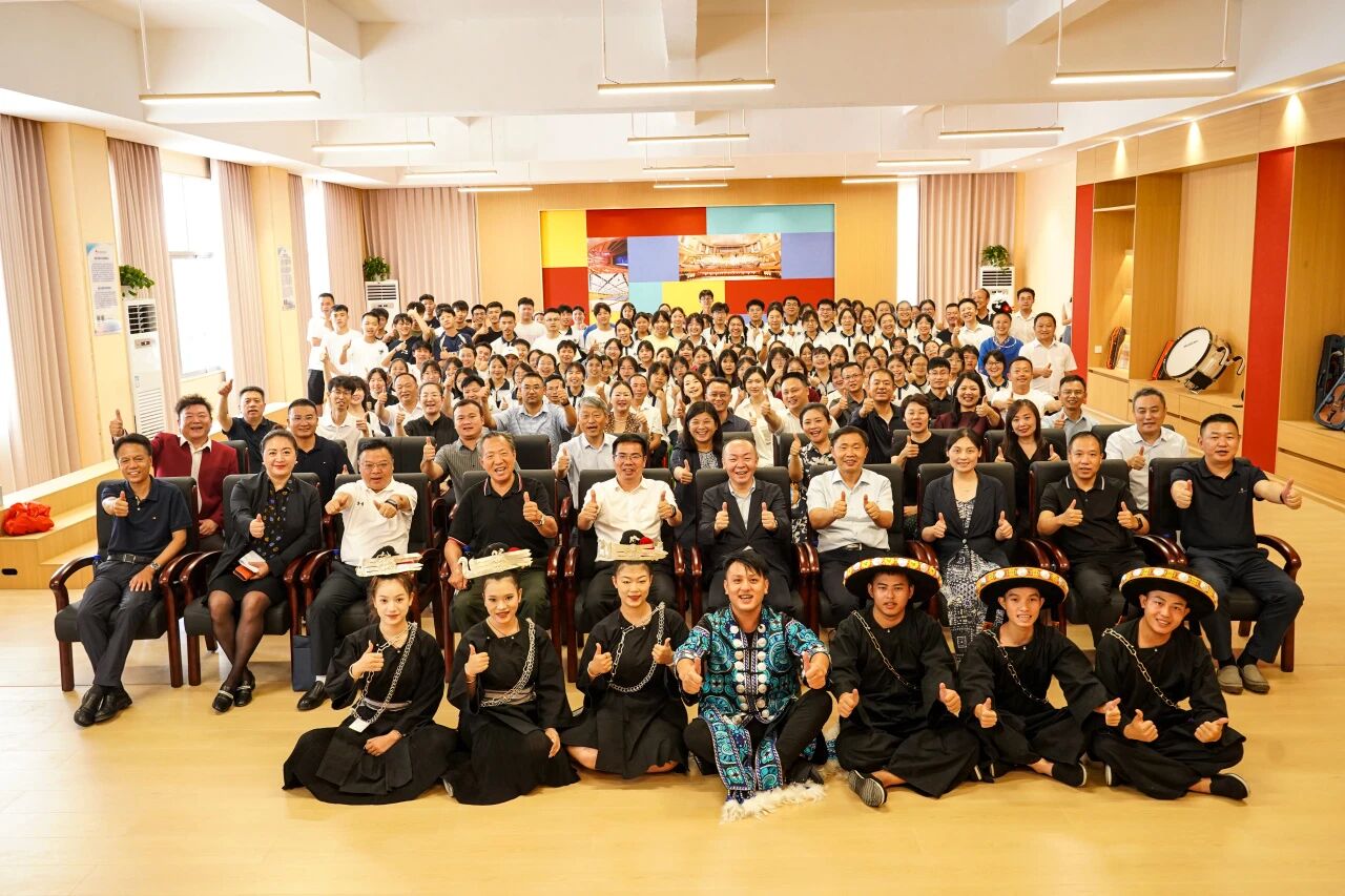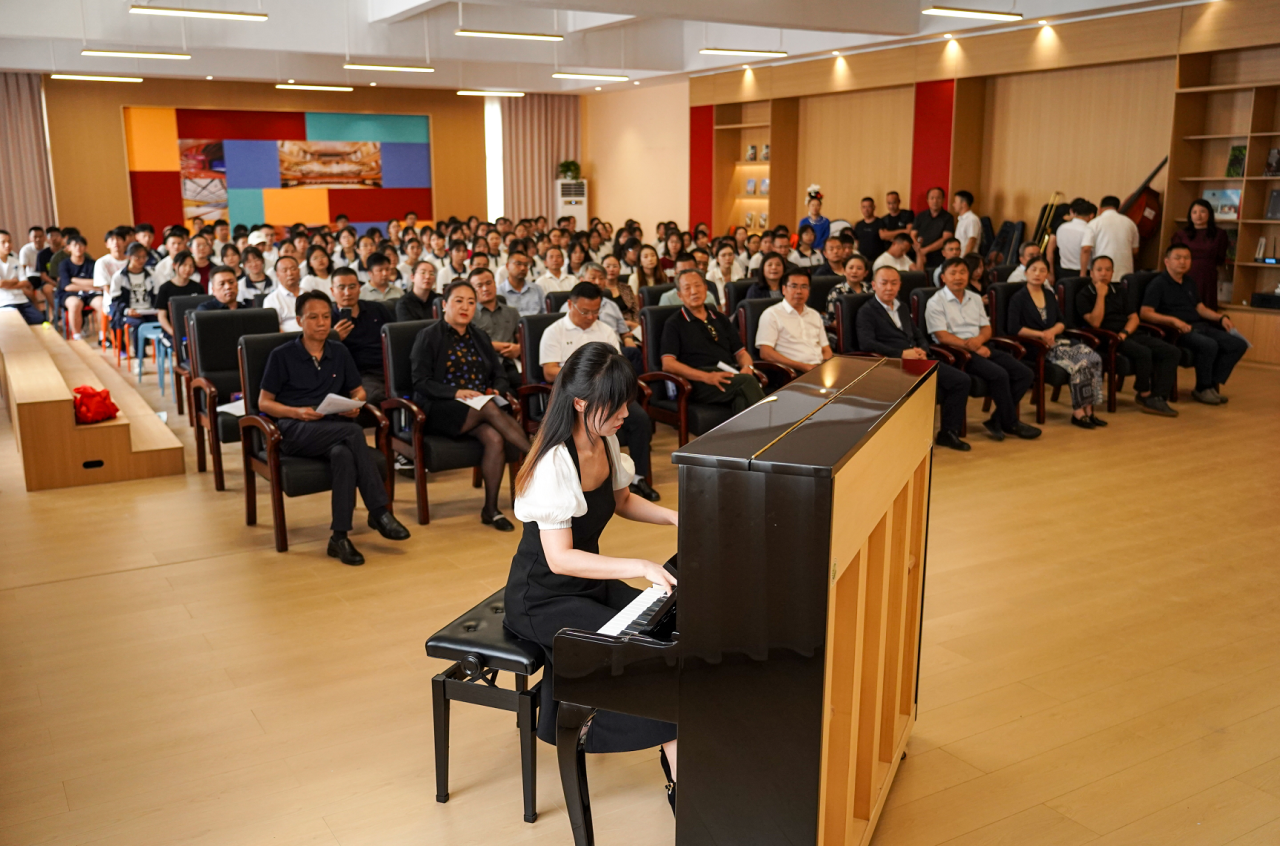 捐赠仪式现场,国家大剧院男高音歌唱家金郑建更特别邀请当地声乐老师同台,共唱《我和我的祖国》。激昂的旋律中,全场嘉宾与师生深情齐唱,共同感受艺术的魅力与祖国的伟大。