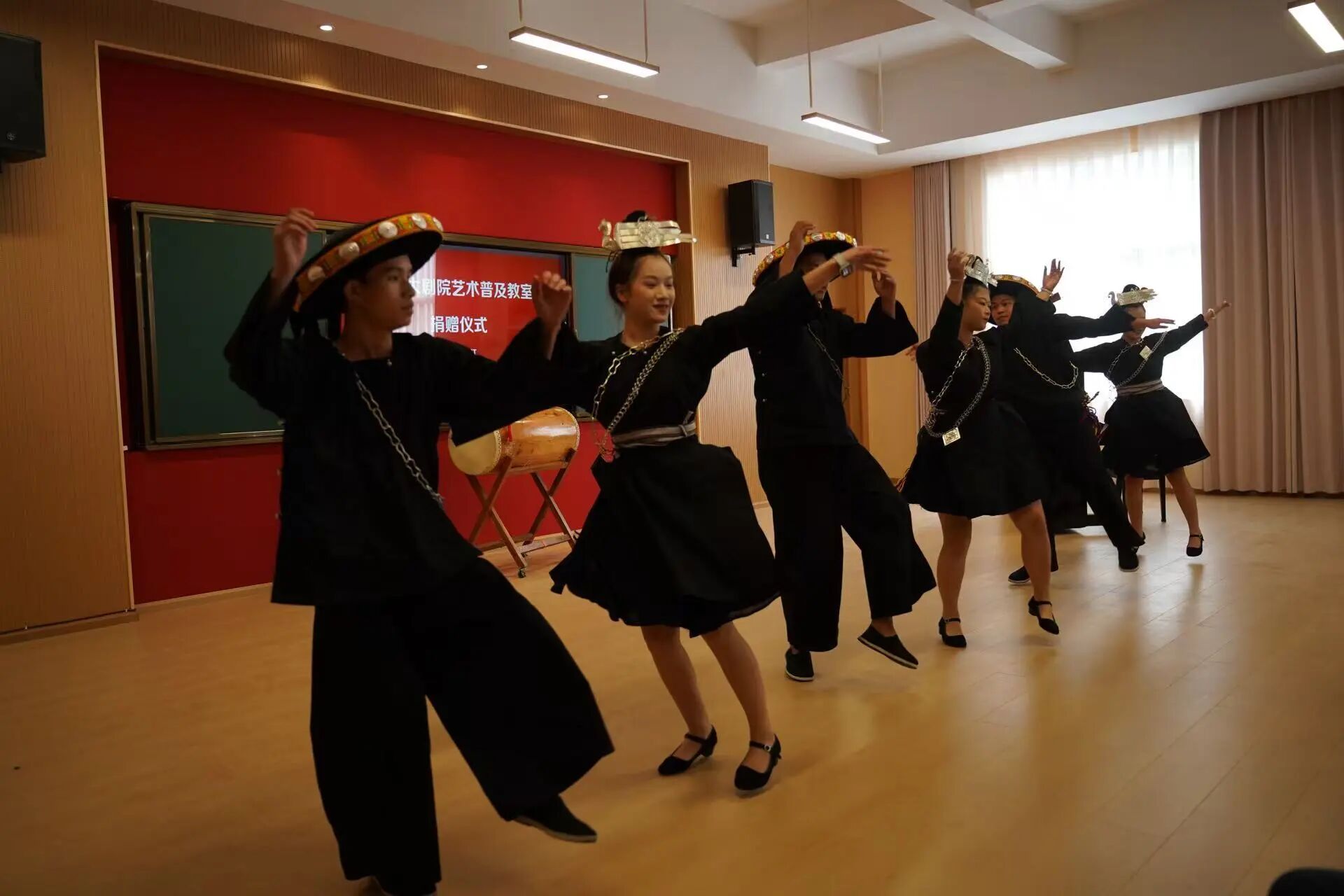 在热烈的掌声中,捐赠方与校方代表共同为台江县民族中学、台江县中等职业学校的艺术普及教室揭牌,标志着两校艺术教育翻开崭新篇章。