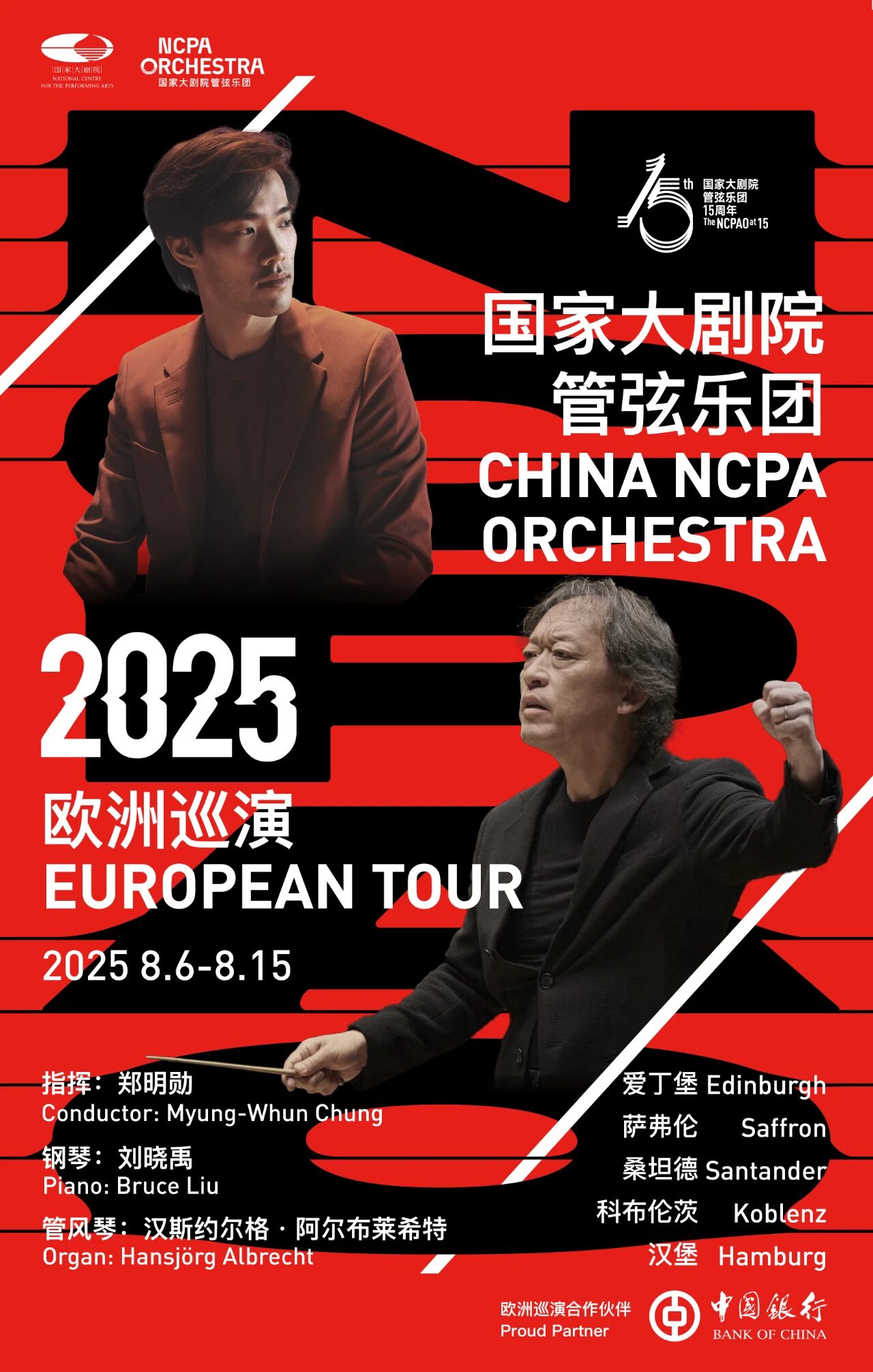 国家大剧院管弦乐团2025欧洲巡演由国家大剧院战略合作伙伴中国银行、中国人民对外友好协会支持。巡演期间交流活动由国家大剧院艺术发展基金会和北京金融街资本运营集团有限公司公益支持。