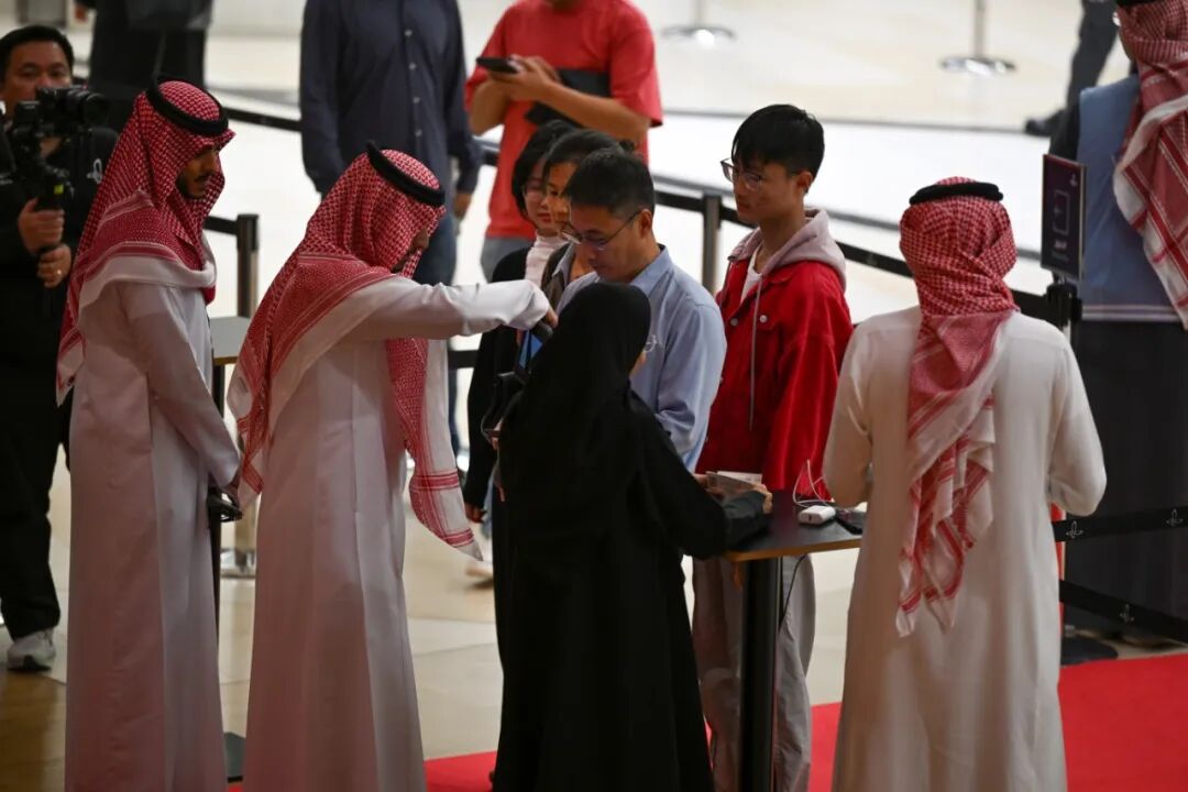 10日上午,合唱团为当地12所中小学800余位学生带来了一场别开生面的公益音乐会,演出《月亮圆圈舞》《音乐之声组曲》《孤勇者》等中外经典歌曲。选曲充分考虑到孩子们审美趣味,表演形式丰富活泼,融入歌舞、戏剧表演、启蒙互动。孩子们全程投入,随着音乐节奏拍手、呐喊,争相涌上台参与互动,清澈的眼中闪烁着对音乐的好奇与喜爱。初中生费萨尔兴奋地说:“虽然语言不同,但音乐里的快乐我能真切感受到。”在沙特从事中文教学的张琪佳带队学生来观看演出,据她介绍:“沙特从去年开始推行了中文的普及教学,在许多公立中学纳入了中文必修课。孩子们在学习中文的过程中,都对中国文化产生了浓厚的兴趣,此次身临其境听中国的合唱团演唱,更加深了他们对中国文化的亲近感。”