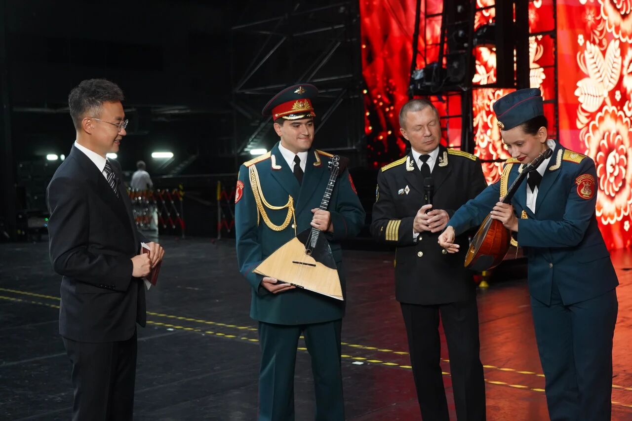 中场导赏采访了包括歌舞团团长、艺术总监根纳季·萨切纽克,军乐团首席指挥尼古拉·基里洛夫,首席男高音瓦基姆·阿纳涅夫在内的多位俄罗斯优秀艺术家,不但分享了再次来到中国演出的激动心情、详细展示了歌舞团的特色乐器与服装,还即兴高歌、翩然起舞,让“第二现场”的观众以全新的视角近距离感受艺术家们深湛的艺术功力。