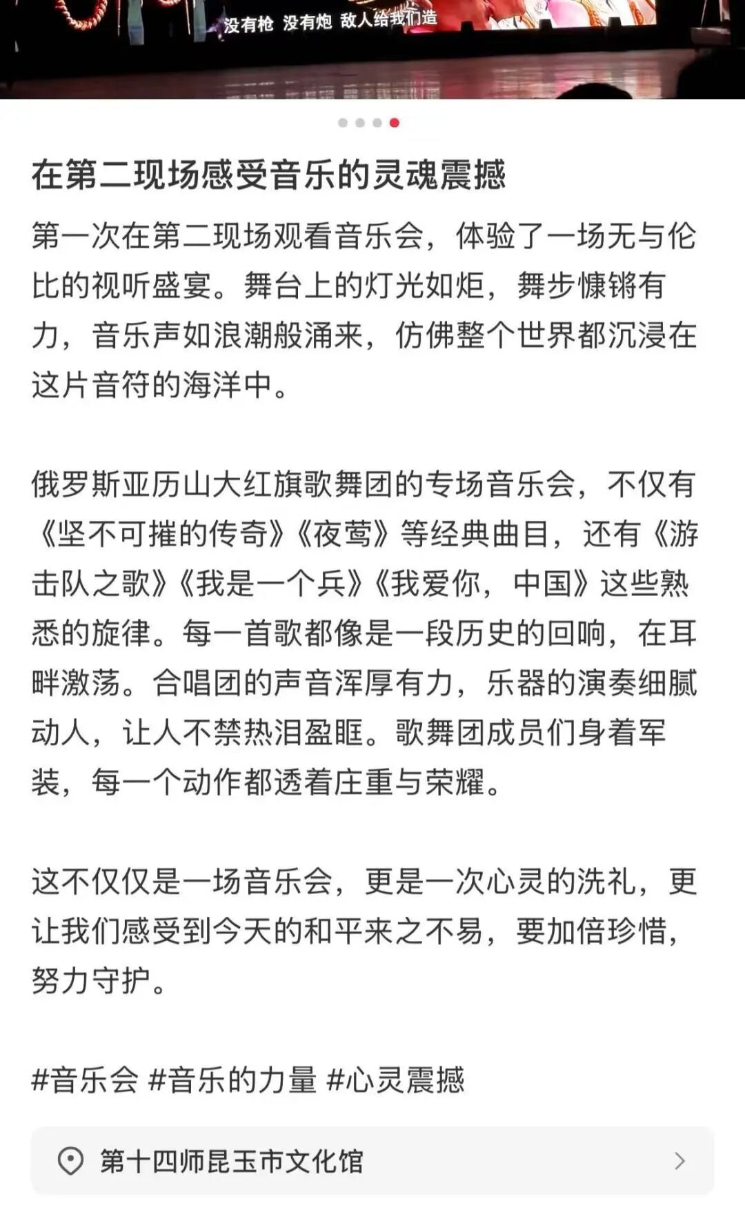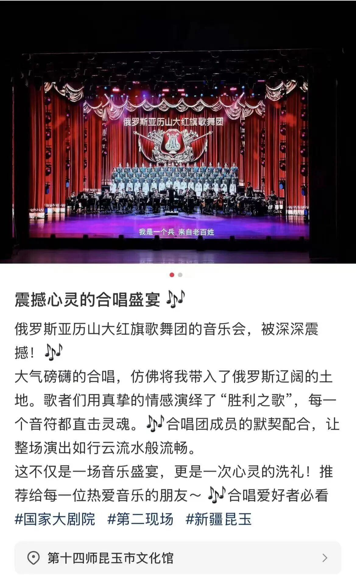 作曲家舒楠在导赏中分享:“我觉得‘第二现场’这种形式特别好,让更多观众在家门口就能欣赏到国家大剧院的高质量文化资源,满足了大家‘看得着’和‘看得起’的需求。中国观众对俄罗斯音乐很熟悉,红旗歌舞团演唱的歌曲都承载着听众们的美好回忆”。