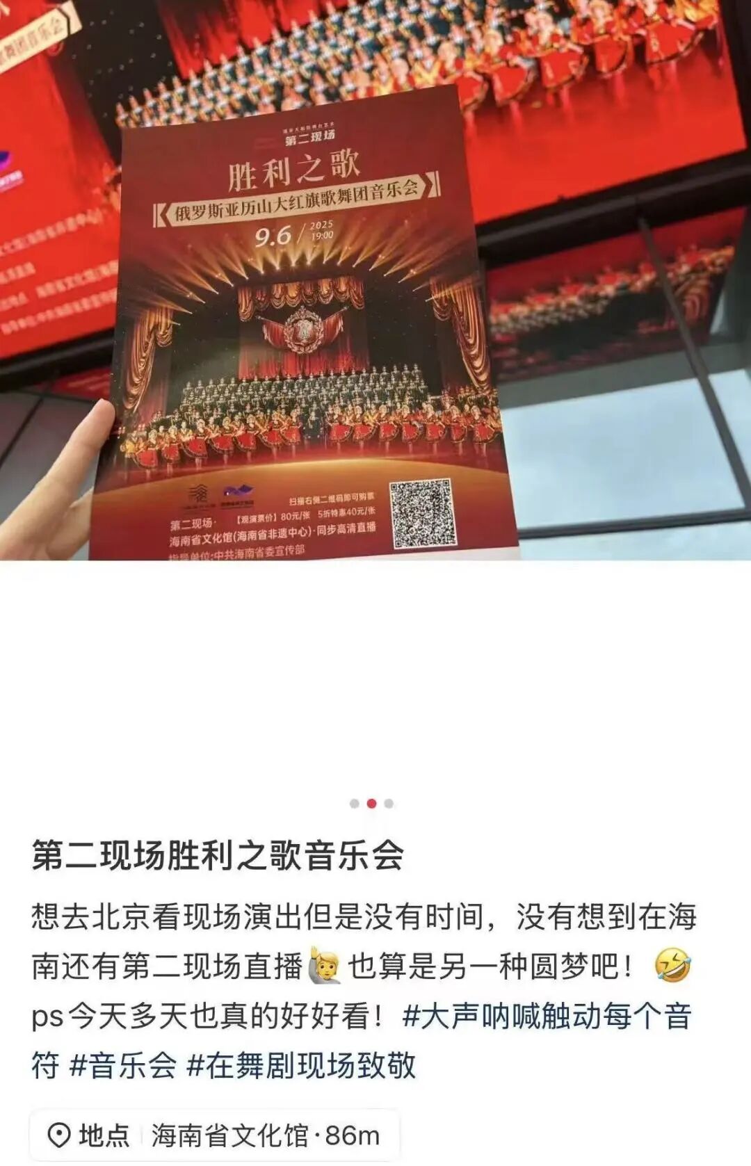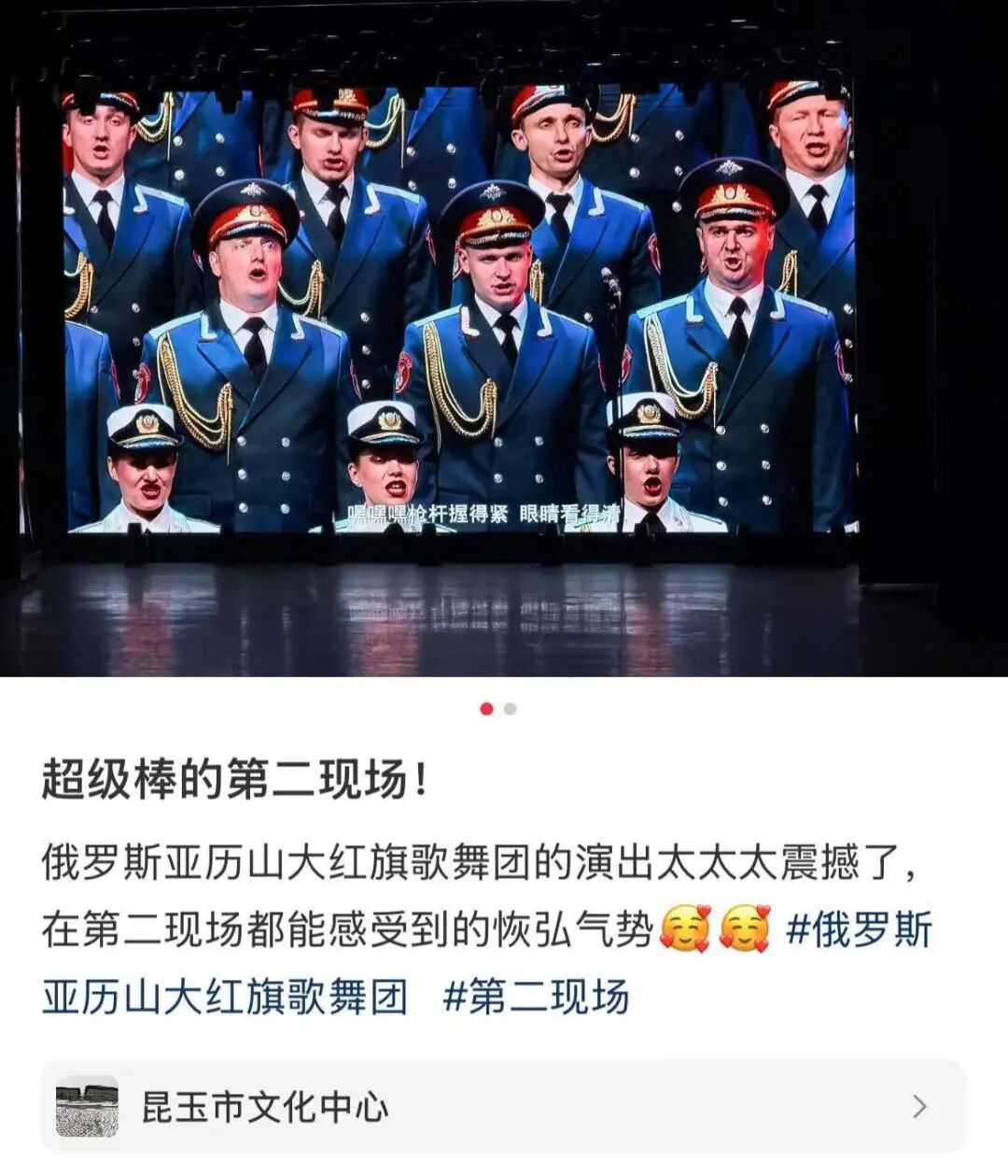 从雪域高原、茫茫草原,到椰林海湾、江南小镇,“第二现场”再一次实现了舞台艺术与尖端技术的完美融合,在纪念中国人民抗日战争暨世界反法西斯战争胜利80周年的历史时刻,面向全国观众直播呈现了来自俄罗斯的“戎装艺术劲旅”在国家大剧院舞台上的精彩演绎。