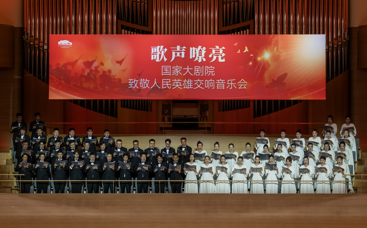 本场音乐会以“致敬英雄”为核心,精心编排了一系列承载红色记忆的经典曲目。从《松花江上》的悲怆低吟,到《八路军进行曲》的铿锵激昂,再到《没有共产党就没有新中国》的嘹亮合唱,国家大剧院管弦乐团与合唱团在指挥家的引领下,用恢弘的旋律勾勒出中国人民从苦难走向胜利的壮阔历程。演出现场,乐声与掌声交织,熟悉的旋律唤起了嘉宾们对历史的深切追忆,每一个音符都饱含着对人民英雄的无限敬意。