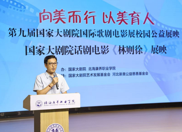 9月8日上午,国家大剧院国际歌剧电影校园公益展映来到首站北海康养职业学院,学院300余名师生代表齐聚一堂,共同观看了话剧电影《林则徐》。影片放映前,北海康养职业学院党委委员、宣传部部长李文发表致辞,国家大剧院影视节目制作部副部长孙迪致辞并进行了演前导赏。国家大剧院发展合作部部长、艺术发展基金会理事长黄文卉向学院赠送了国家大剧院“艺术通识课”系列推荐读物——《音乐史》中文版·世界歌剧精选系列,助力校园艺术文化建设。