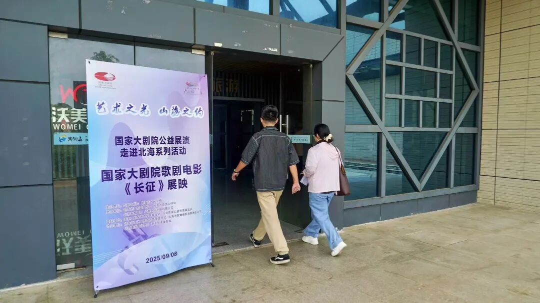 8日下午、晚上国家大剧院歌剧电影《长征》于涠洲岛连映两场。放映当日,恰逢台风“塔巴”过境,观众不惧风雨前往影院观影,在惊涛拍岸间重温峥嵘岁月,狂风骤雨中重温红色记忆。观影结束后,许多观众久久不愿离场,纷纷表达内心激动之情。涠洲岛的岛民陈先生说“这是我第一次看到歌剧,以前只在书本上听说过,感觉距离自己很远,但这次歌剧电影来到家门口,机会实在太难得了,我看雨势稍微小一点就赶紧出发,欣赏着歌剧典雅的旋律、深情的演唱,令人心潮澎湃,仿佛置身于苦难辉煌交织的战争岁月,感受着革命先辈们在长征中的艰难和不屈的精神,我一直不能平静下来。”