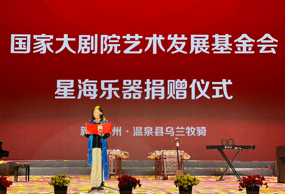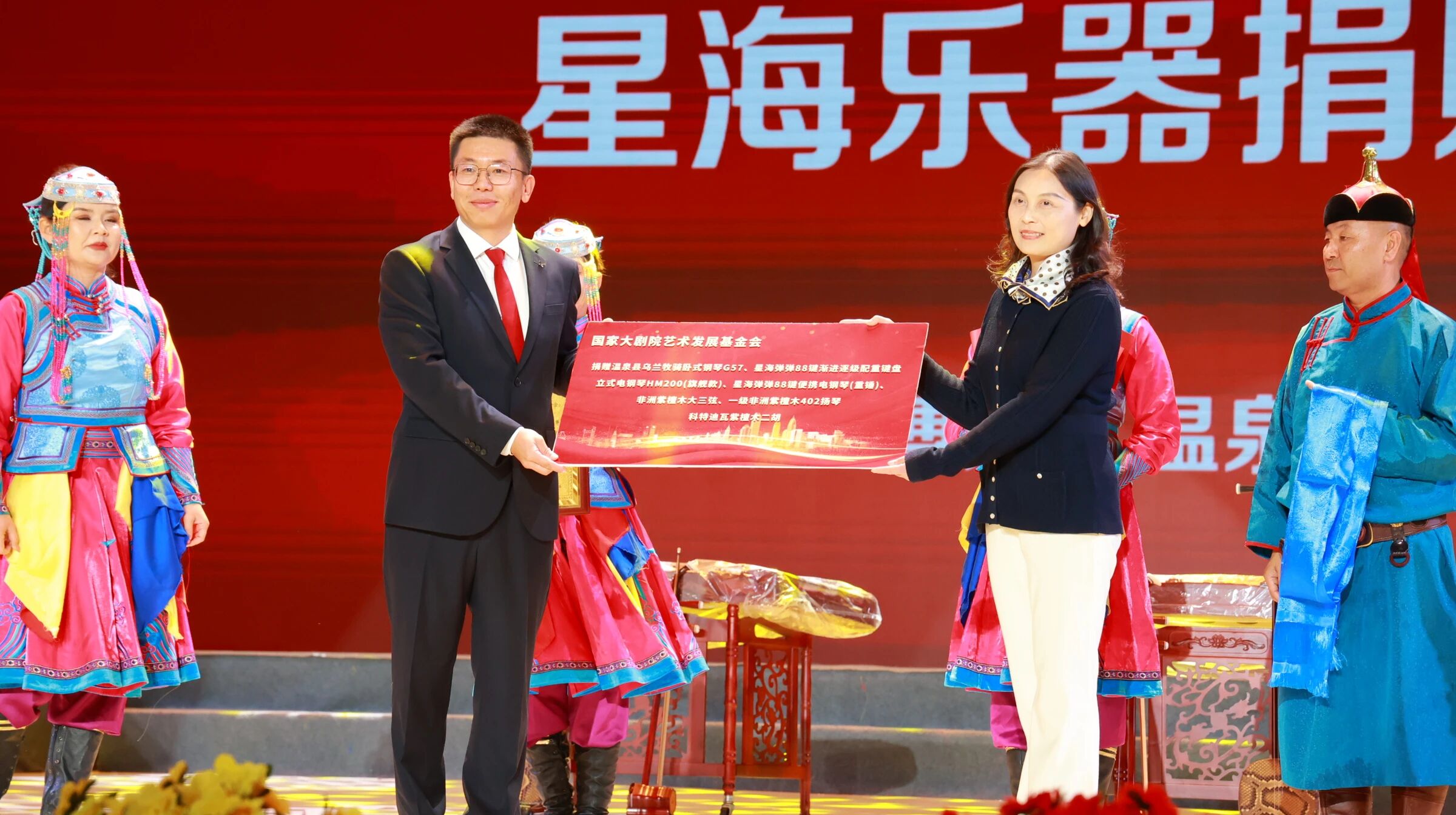 当晚,在“乌兰牧骑·薪火传承——庆祝温泉县乌兰牧骑成立60周年文艺晚会”开幕前,国家大剧院艺术发展基金会与温泉县乌兰牧骑举行星海乐器捐赠仪式。