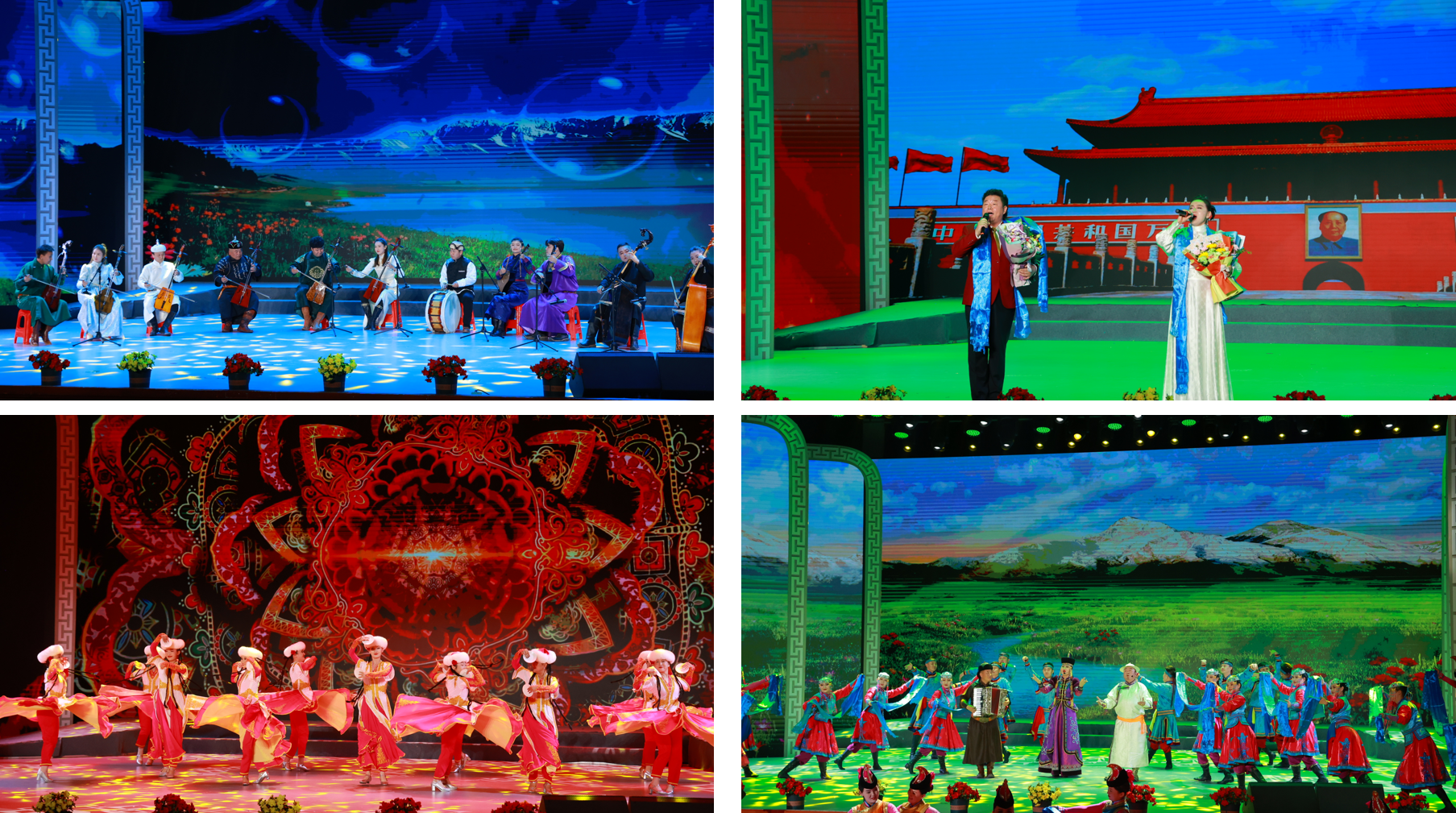 晚会在情景歌舞《草原人民永远歌唱共产党》中拉开帷幕,温泉县乌兰牧骑、博乐市文化馆、博州歌舞团演员轮番登场,展现基层文艺工作者的风采。国家大剧院艺术家再度登台,金郑建演唱《我的太阳》,胡越带来《打起手鼓唱起歌》,两人还共同合唱《领航》,激昂旋律将晚会气氛推向高潮。