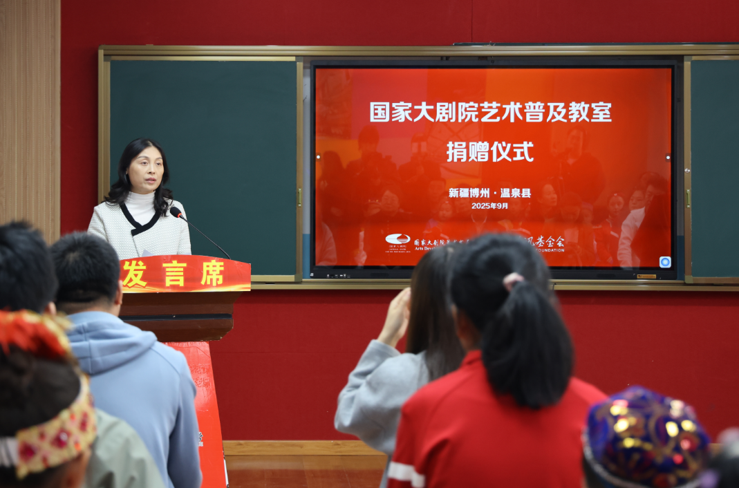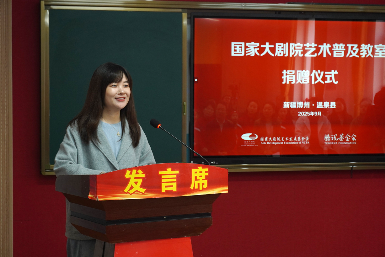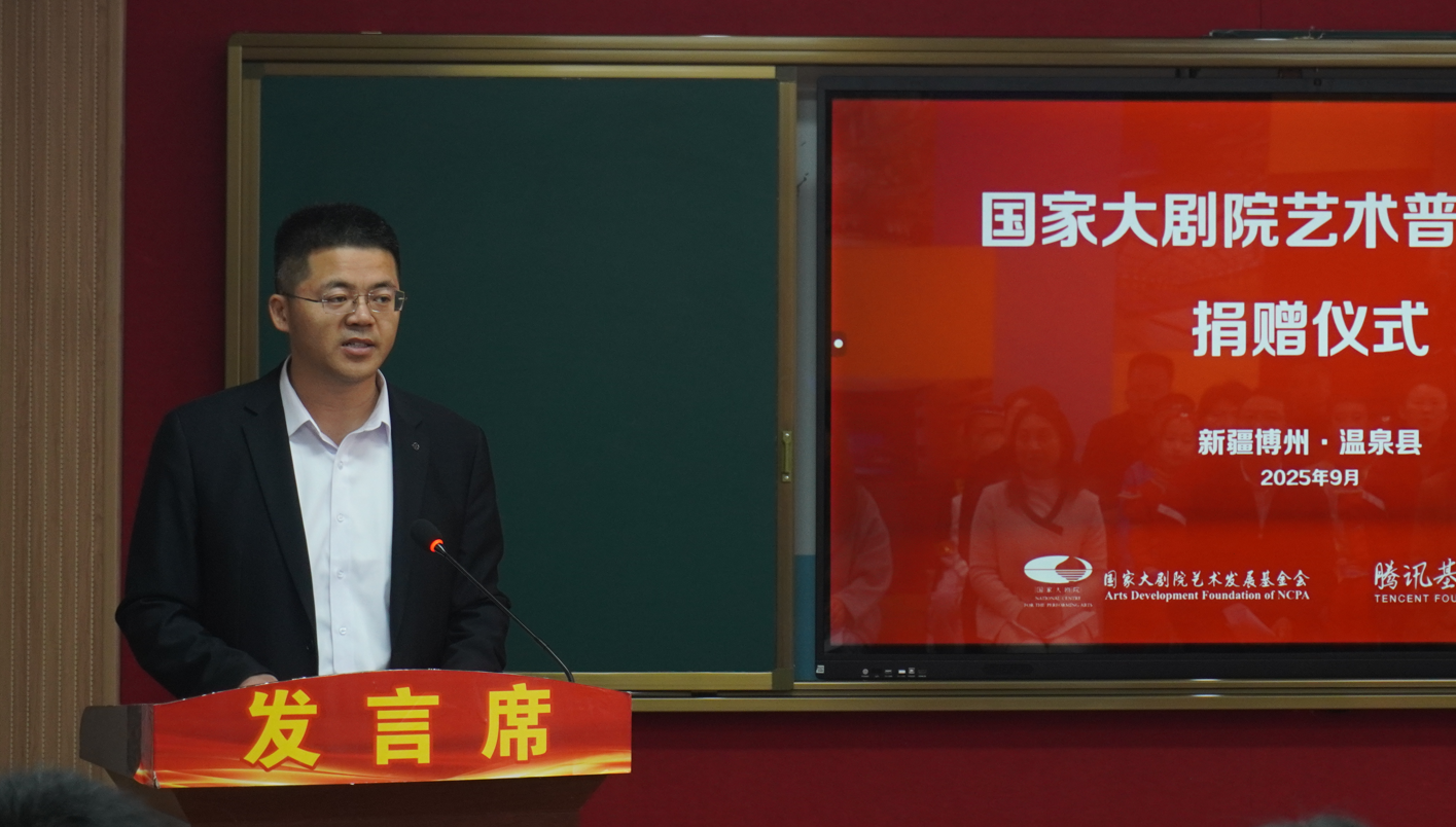 9月18日上午,“国家大剧院艺术普及教室”捐赠仪式在温泉县城镇小学举行。温泉县委常委、组织部部长、教育工委书记但伟在致辞中强调:“艺术是滋润心灵、启迪智慧、塑造人格的重要力量。此次捐赠不仅是对学校美育工作的有力支持,更是对温泉县教育事业和文化建设的巨大推动,将为孩子们打开通往艺术世界的大门。”