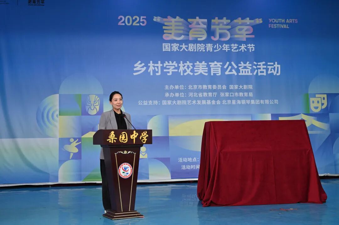 活动伊始,国家大剧院、北京市教委、河北省教育厅、张家口市教育局及校方代表共同为星海钢琴集团捐赠的新钢琴揭幕,同时捐赠的还有国家大剧院精心打造的艺术微课堂光盘。这标志着“硬件支撑+数字资源+活态教学”三位一体的美育赋能模式在该校扎实落地。