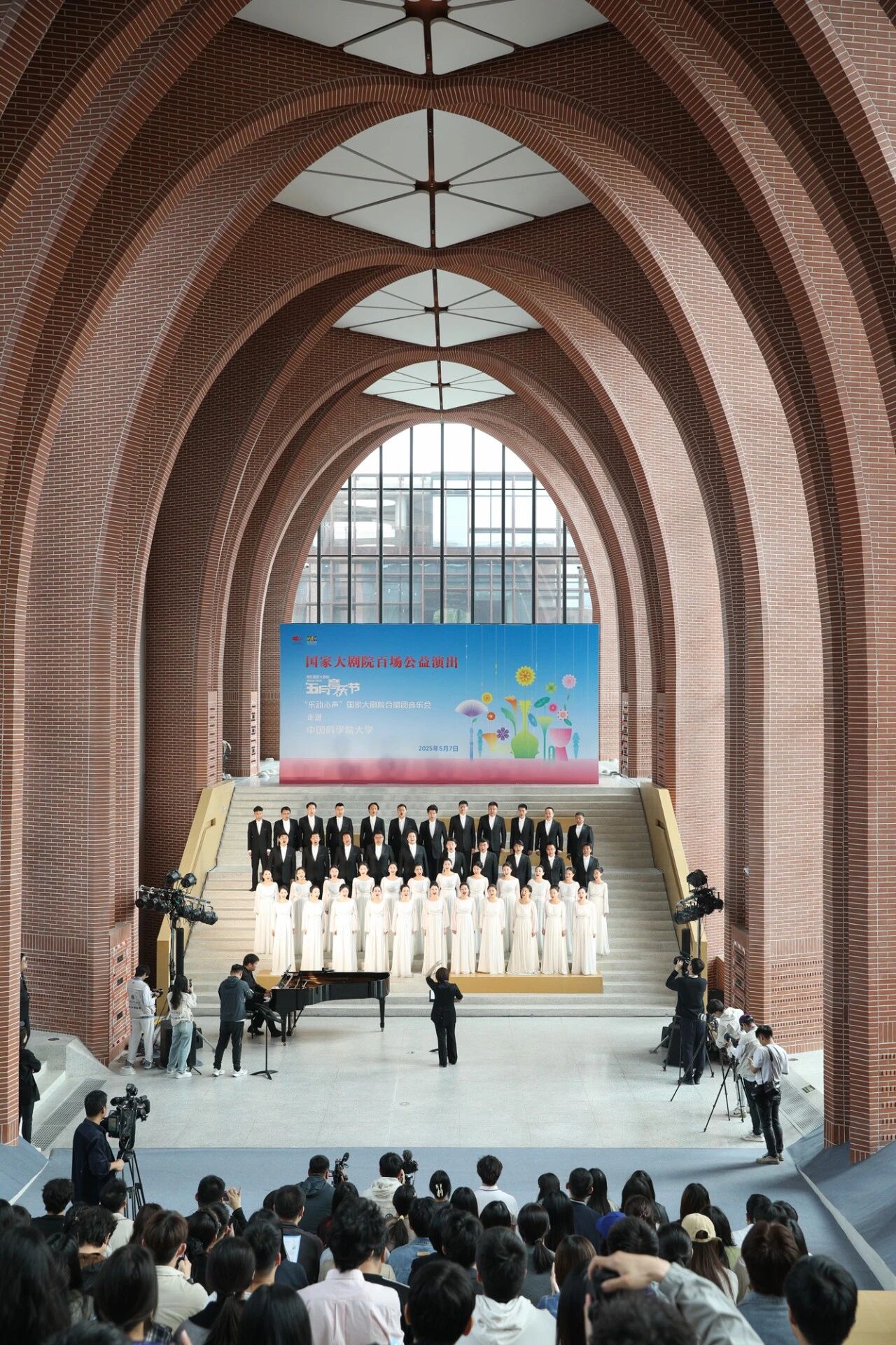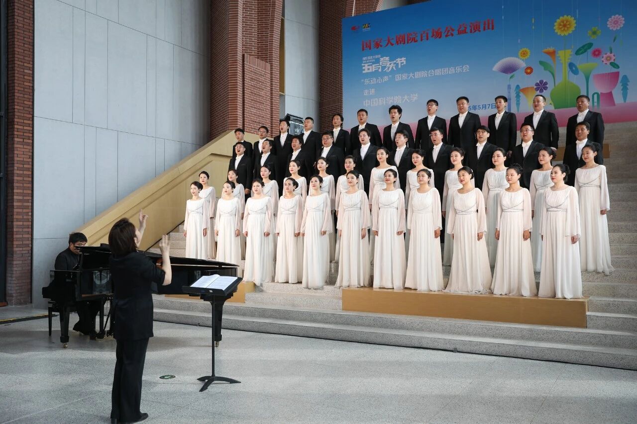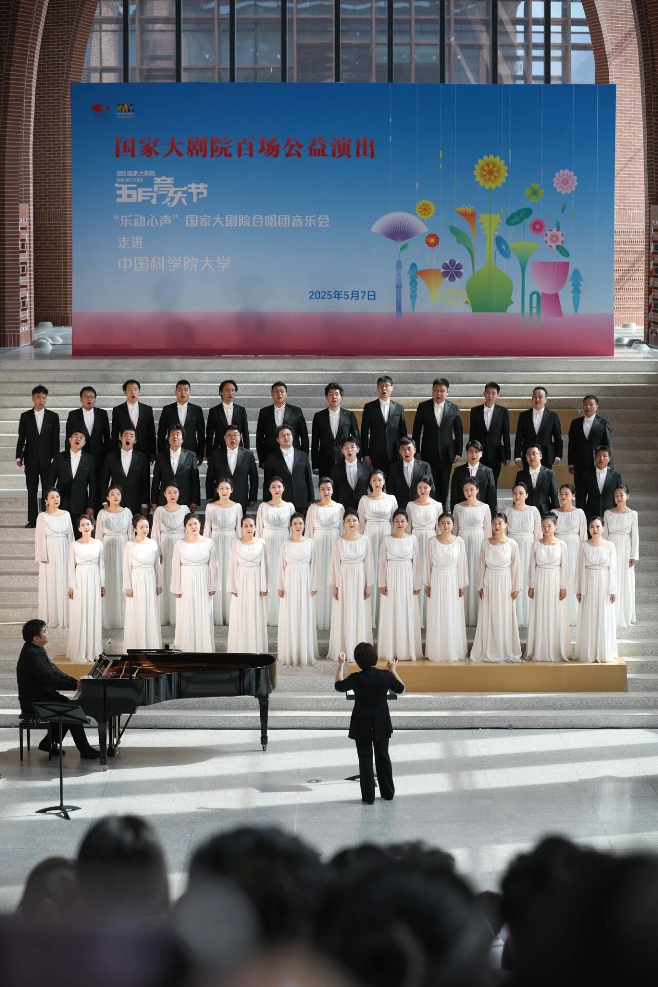 为服务首都科技创新中心建设,推动构建科学与艺术融合发展的文化生态,5月7日,国家大剧院五月音乐节公益演出走进位于怀柔科学城的中国科学院大学雁栖湖校区,国家大剧院合唱团的艺术家们以一场精彩的“乐动心声”合唱专场音乐会,谱写了科技与艺术融合创新的生动乐章。来自国家大剧院、怀柔区委区政府、中国科学院大学的相关领导以及百余名师生共同观看了演出。